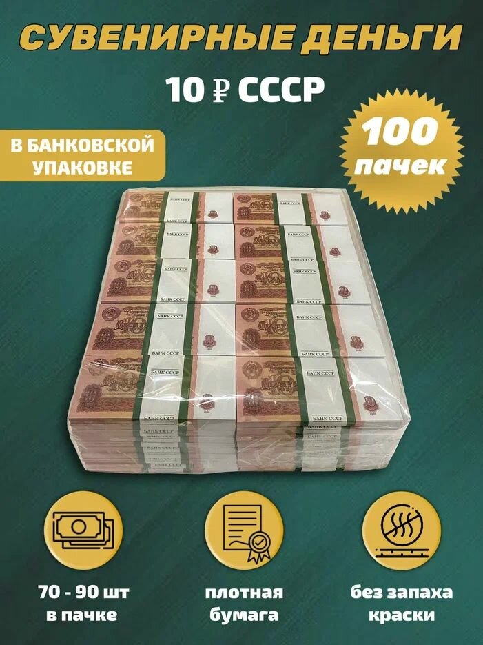 Сувенирные деньги в упаковке номинал СССР 10 рублей , 100 пачек: сравнение цен, характеристики, фото, актуальное наличие и цены.