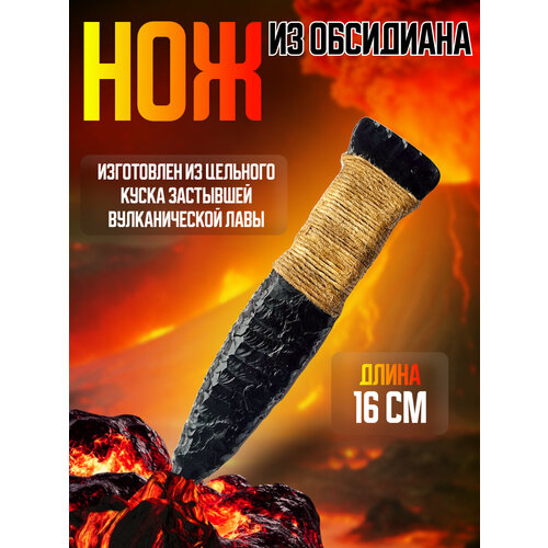 Лезвие ножа изготовлено из застывшей вулканической лавы – Обсидиана. В далекие времена Обсидиан использовали в изготовлении оружия, орудий труда и украшений. Его ценили за прочность и острые края, которые получались при его раскалывании. Нож из Обсидиана использовался в быту, на охоте, и был незаменимым спутником древнего человека.