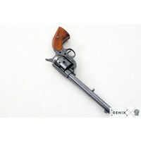Этот макет револьвера представляет историческое и культурное значение, являясь символом американского духа независимости. Он является отличным предметом коллекционирования и подходит как для декоративного использования, так и для театральных постановок или киносъемок. масса — 1,02 кг; длина — 35 см; материал корпуса — металлический сплав, дерево; ударно-спусковой механизм действующий, можно взвести курок и нажать на спуск, барабан вращается.