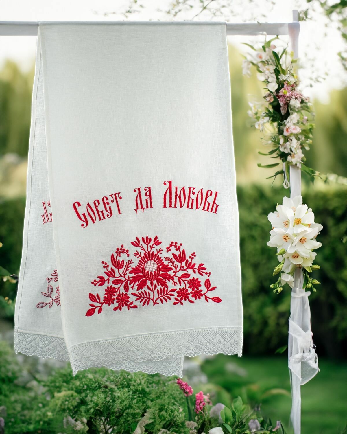 Купить Свадебный рушник «Изобилие», 154х42см, вышивка гладью, лён, кружево с доставкой по всей России. Свадебный рушник «Изобилие», 154х42см, вышивка гладью, лён, кружево: сравнение цен, характеристики, фото, актуальное наличие и цены.