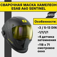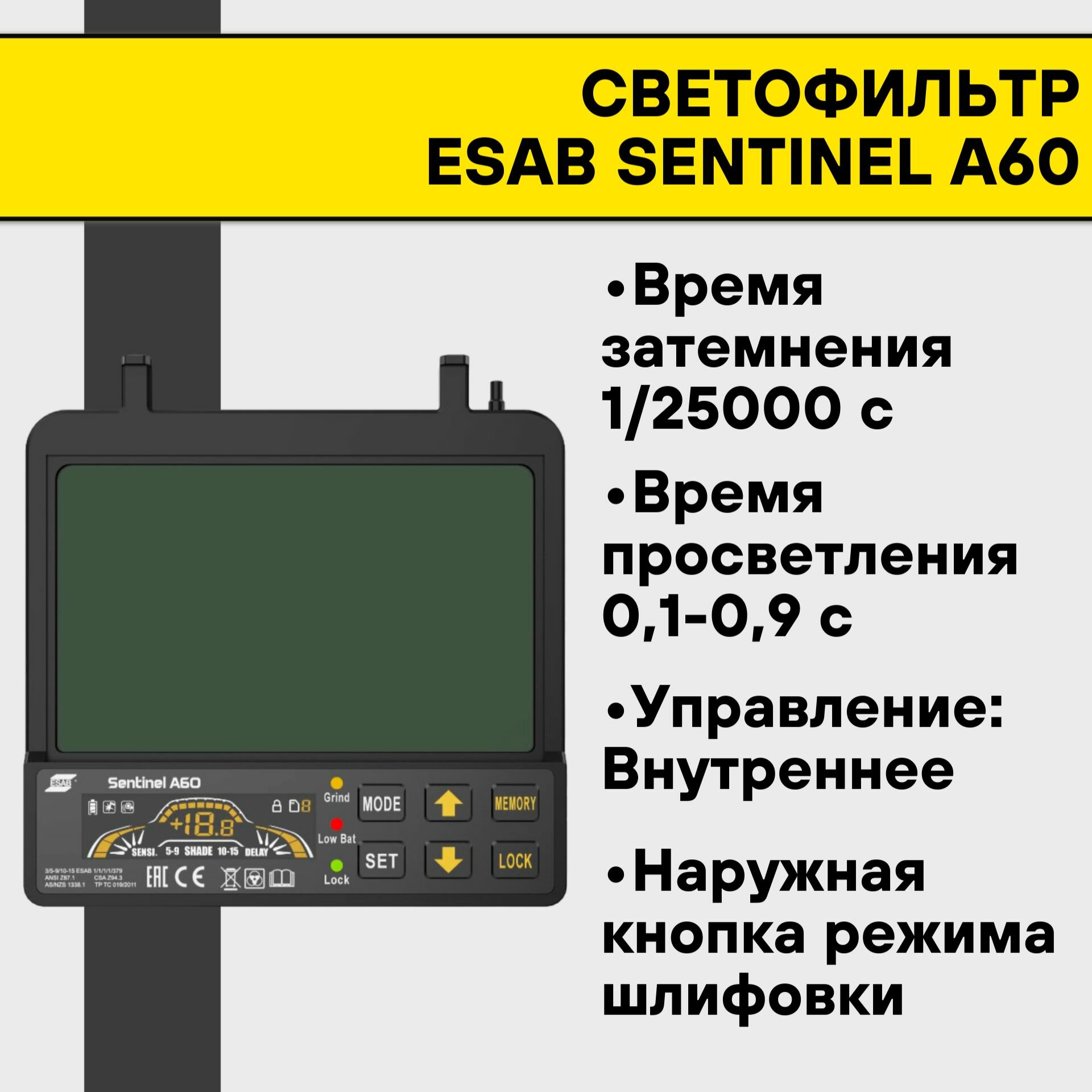 Сварочные процессы:- Газокислородная резка;- Плазменная резка;- Шлифовка;- Сварка GMAW (MIG/MAG);- Сварка GTAW (TIG);- Сварка PAW (плазменно-дуговая сварка);- Сварка SMAW/MMA (штучным электродом). Особенности:- Превосходная оптическая четкость 1/1/1/1 EN;- Технология цветопередачи линз ESAB OpTCS;- Широкая область обзора ADF: 118 x 71мм;- Диапазон затемнения DIN 3/5–13 с шагом регулировки 0,5;- 0,08 миллисекунды - время переключения;- 4 особо чувствительных датчика дуги;- Интуитивно понятные элементы управления A, D F, включая чувствительность и задержку;- Настройка блокировки степени затемнения ADF;