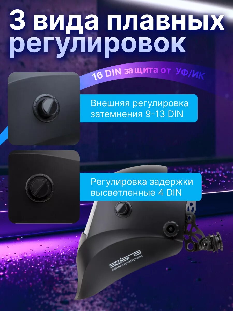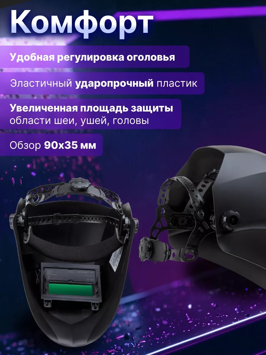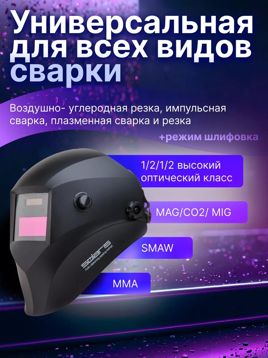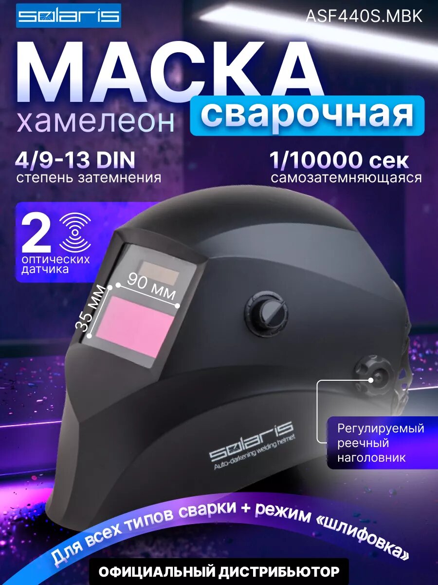 Маска сварочная хамелеон Solaris ASF440S (черный) (1/2/1/2; 90×35 мм; DIN 4/9-13) (ASF440S. MBK): сравнение цен, характеристики, фото, актуальное наличие и цены.