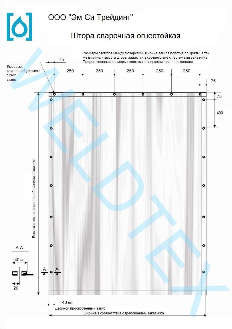 Материал не содержит асбест. Края штор обрабатываются во избежание разрывов. Для крепления по всем сторонам устанавлены люверсы диаметром 12мм.