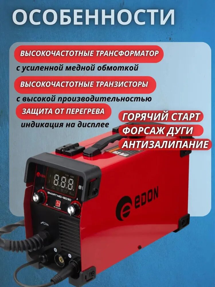 Сварочный инвертор Edon Smart MIG-180/5C, многофункциональный, 6.6 кВ·А, 180А: сравнение цен, характеристики, фото, актуальное наличие и цены.