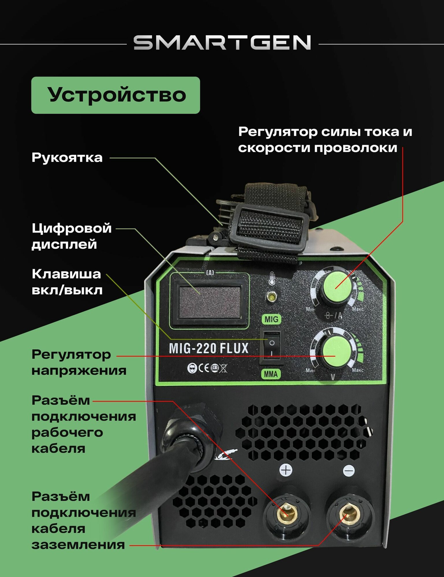 Сварочный аппарат инвертор полуавтомат SMARTGEN MIG 220 Flux без газа 2 В 1 (MMA/MIG FLUX) IGBT: сравнение цен, характеристики, фото, актуальное наличие и цены.