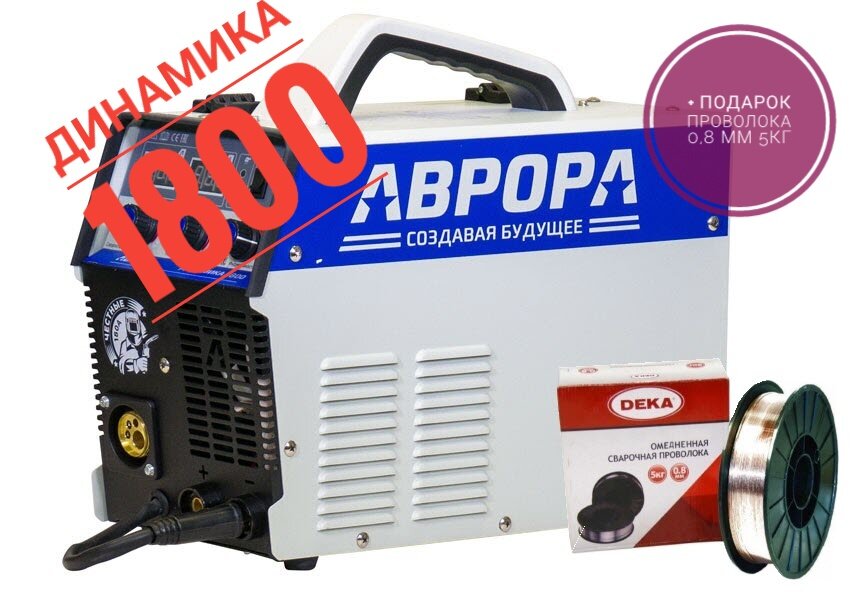 Сварочный полуавтомат Аврора Динамика 1800 – инверторный полуавтомат с возможностью MIG-MAG сварки в среде инертного и активного защитных газов, сварки порошковой проволокой NO GAS, а также ММА режимом.