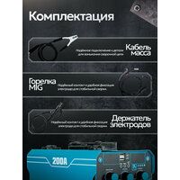 | Комплектация | Сварочный аппарат Руководство по эксплуатации Кабель с горелкой ЕВРО разъем 3 метра Держатель электродов 2.8 метра Обратный силовой кабель с зажимом 2 метра Щетка-молоток Газовый шланг ZIP-комплект (ролик для газовой сварки, хомуты для газового шланга) Сварочная проволока Защитные очки Защитные перчатки |