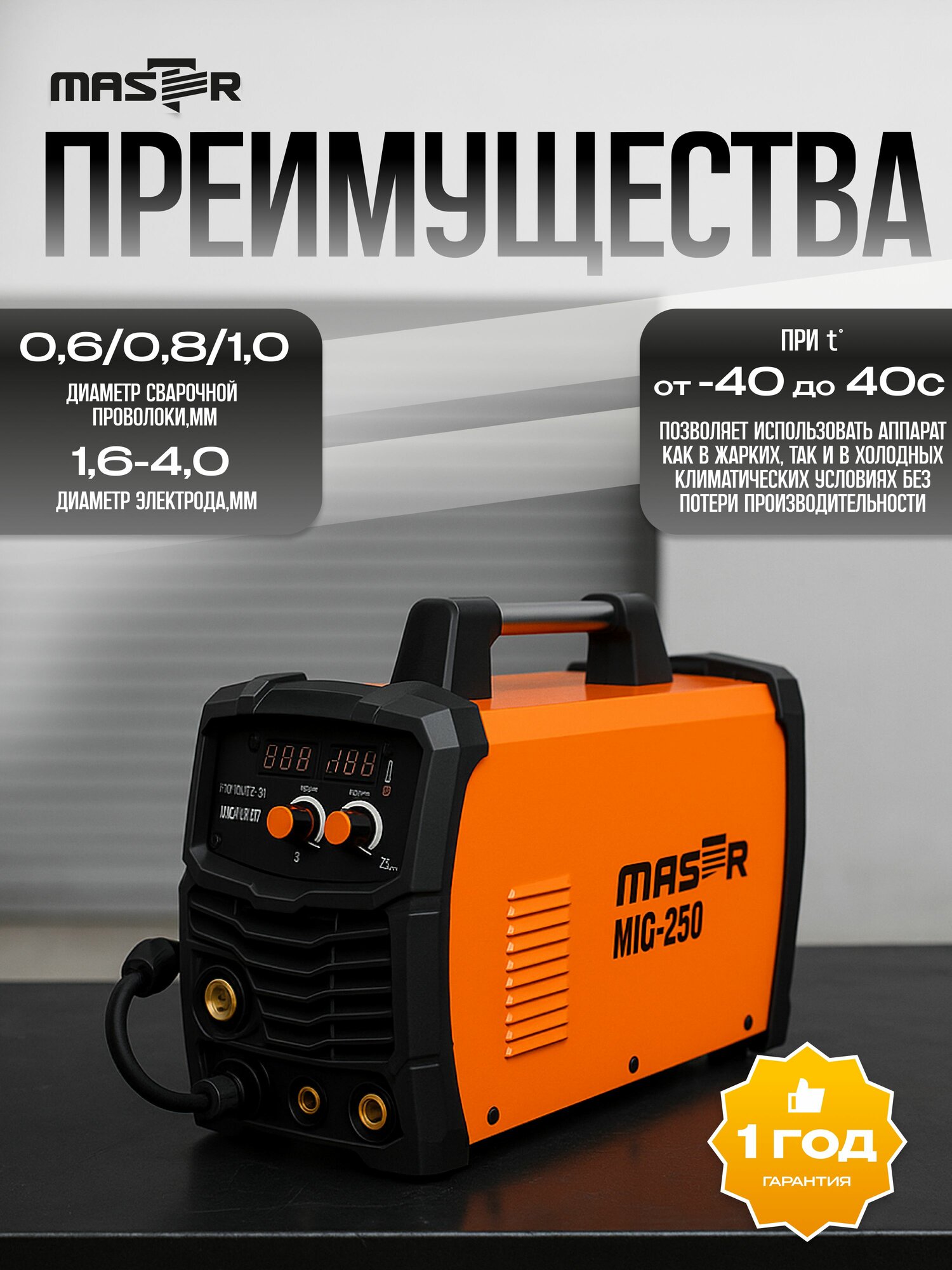 Купить Сварочный аппарат инверторный полуавтомат «MASTER» MIG-250 с доставкой по всей России. Сварочный аппарат инверторный полуавтомат «MASTER» MIG-250: сравнение цен, характеристики, фото, актуальное наличие и цены.