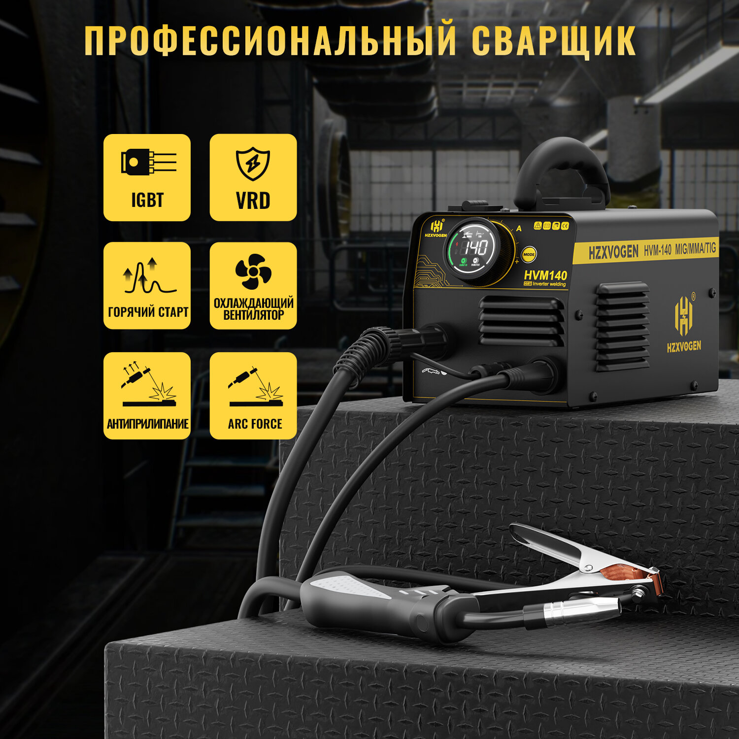 Сварочный аппарат инверторный / Сварочный полуавтомат без газа HZXVOGEN HVM140(ММА/MIG без газа /LIFT TIG)