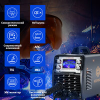 Четкий LCD дисплей: Аппарат оснащен цветным цифровым экраном, который наглядно отображает параметры сварки, такие как ток, напряжение и режим работы. Это упрощает процесс сварки и повышает производительность.