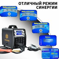 Интеллектуальная настройка параметров: Благодаря синергетической функции аппарат автоматически подбирает оптимальные параметры сварки. Всё, что нужно, это выбрать диаметр проволоки, тип металла и газовую смесь для достижения наилучшего результата.