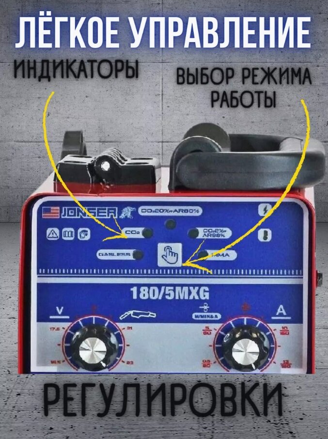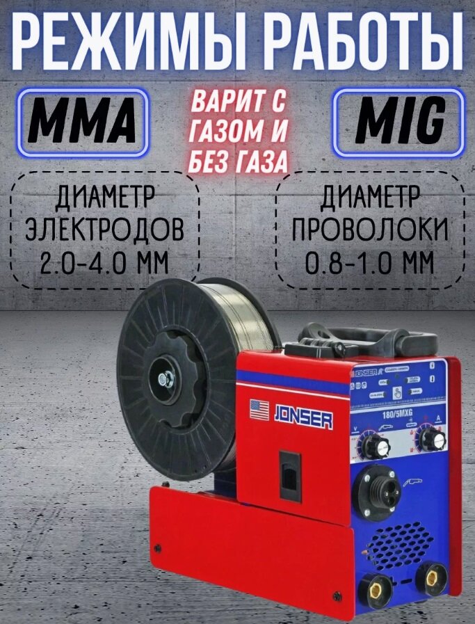 Сварочный аппарат JONSER 180/5MXG с газом и без газа, MMA, MIG, TIG, Lift, FCAW: сравнение цен, характеристики, фото, актуальное наличие и цены.