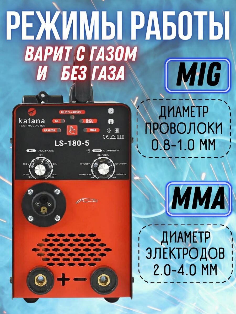 Купить Сварочный аппарат LS-180-5 «KATANA», MIG/MAG/MMA, 180А, 220В, красный с доставкой по всей России. Сварочный аппарат LS-180-5 «KATANA», MIG/MAG/MMA, 180А, 220В, красный: сравнение цен, характеристики, фото, актуальное наличие и цены.