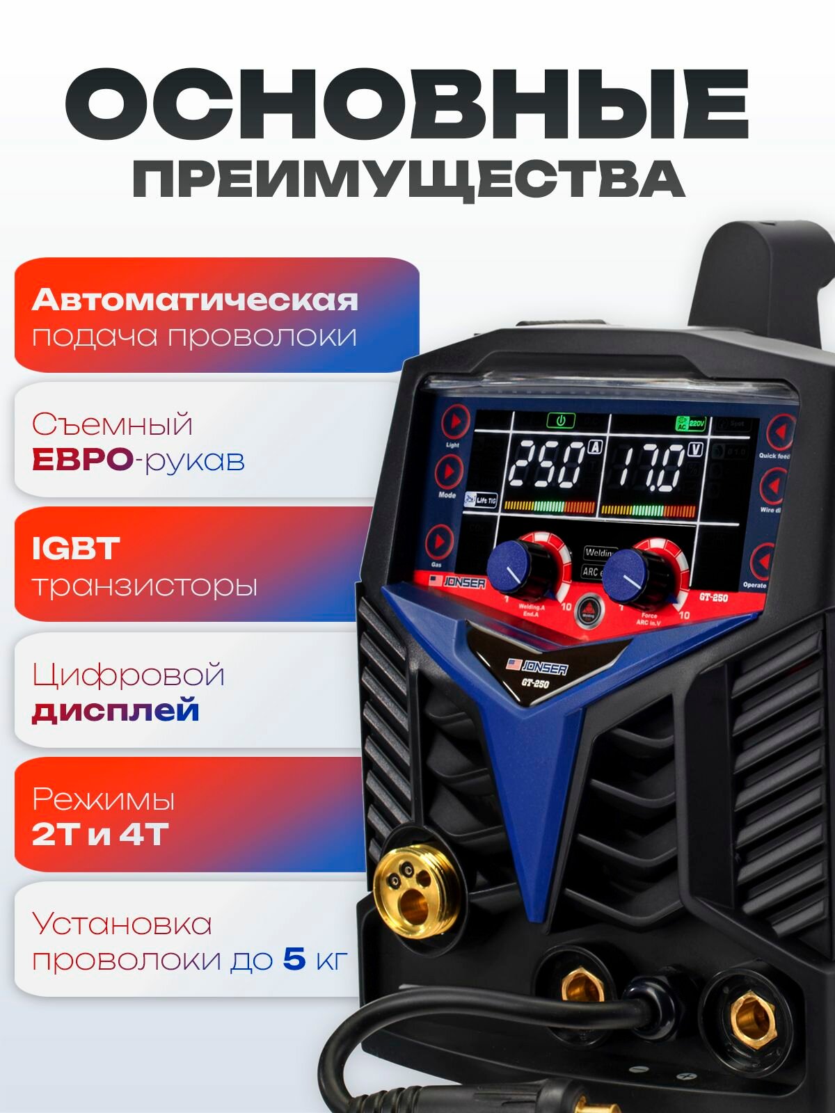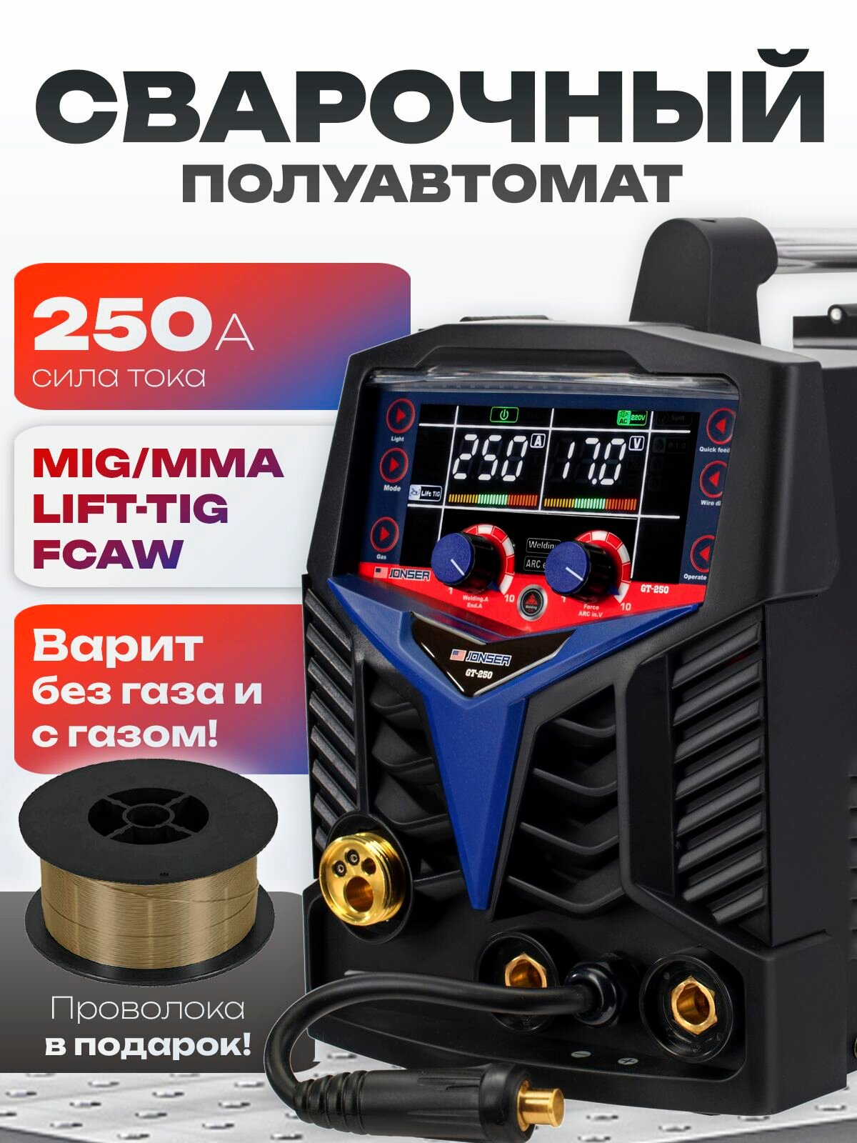 Сварочный аппарат полуавтомат без газа и с газом 7в1 JONSER GT-250 / Полуавтоматический инверторный /инвертор для сварки электродом и проволокой/1 катушка газовой проволоки в комплекте ww-0.8: сравнение цен, характеристики, фото, актуальное наличие и цены.