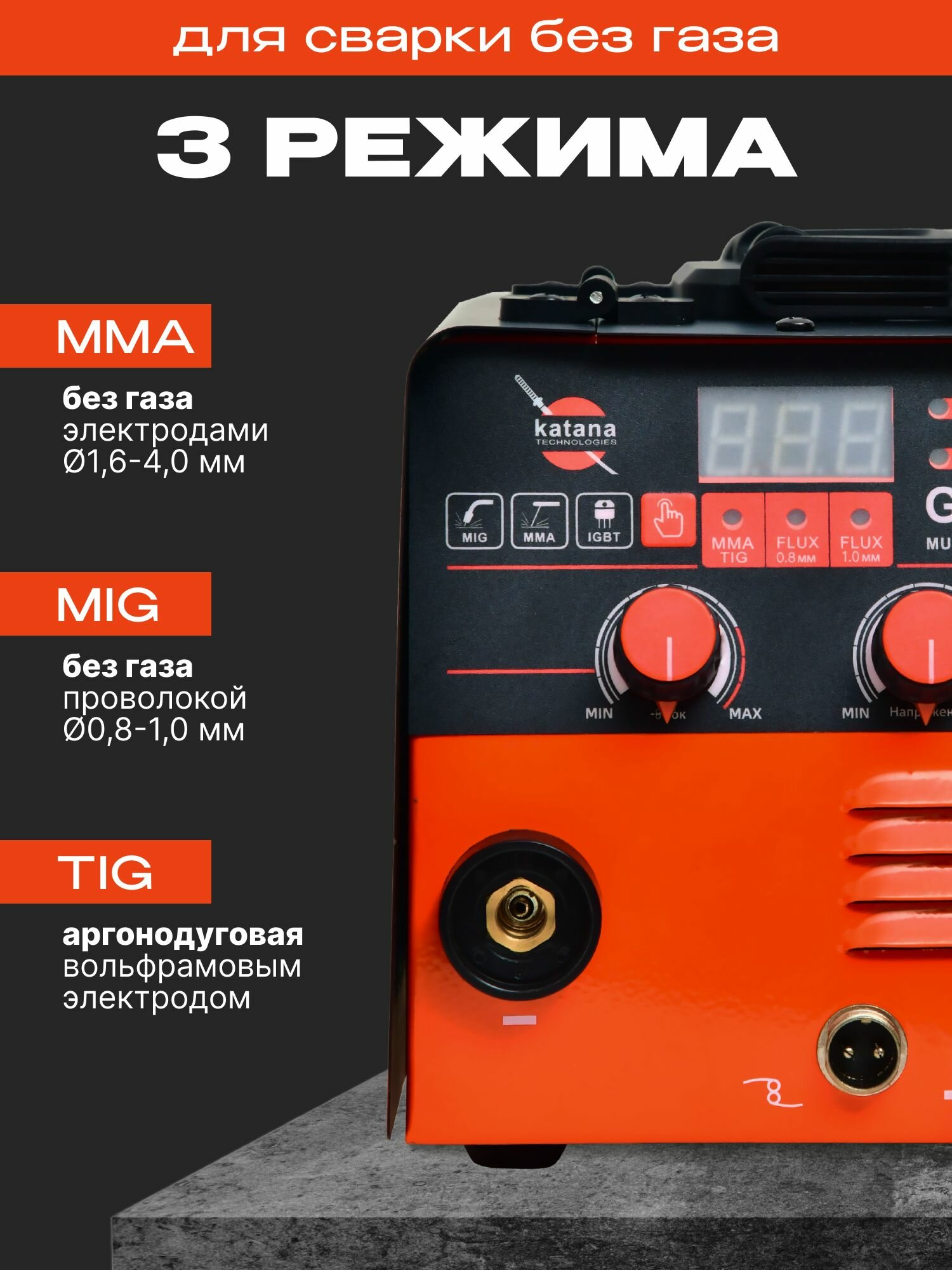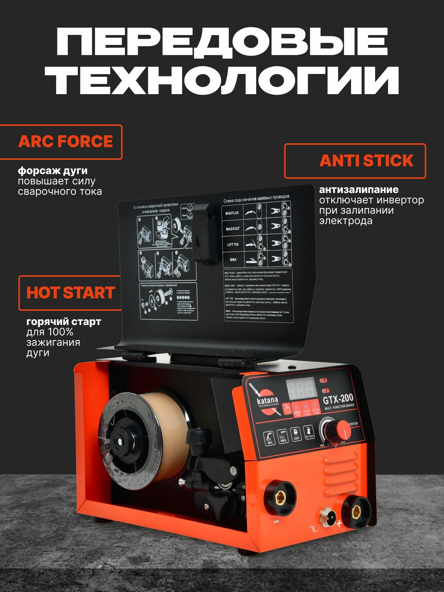 Купить Сварочный аппарат полуавтомат без газа, Инверторный, 200А, KATANA GTX-200 с доставкой по всей России.