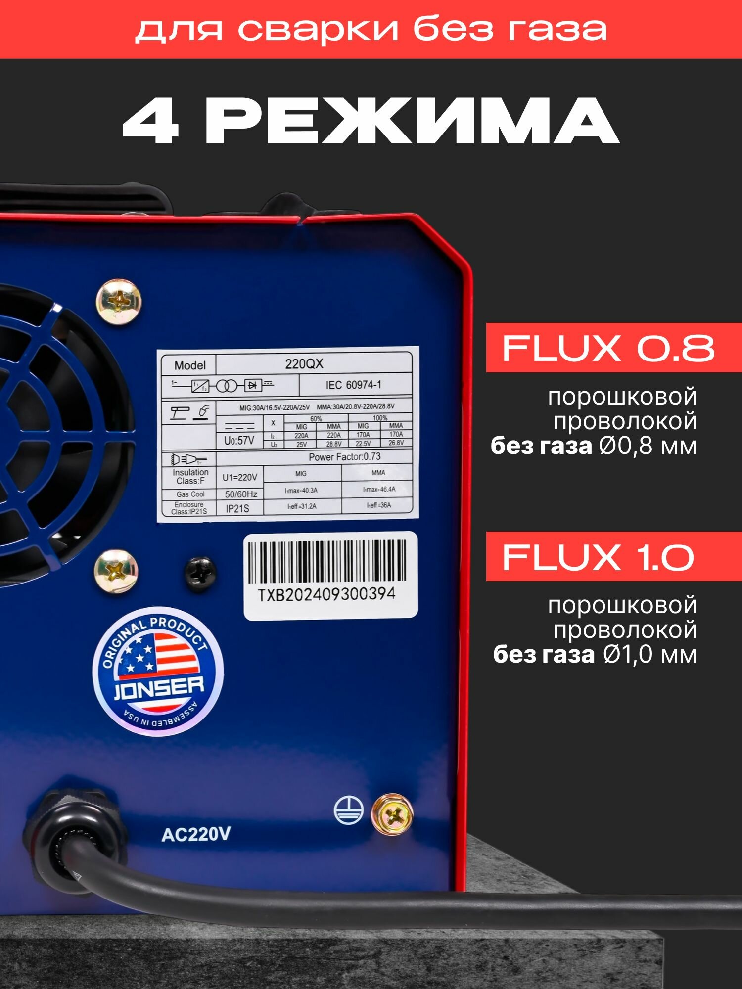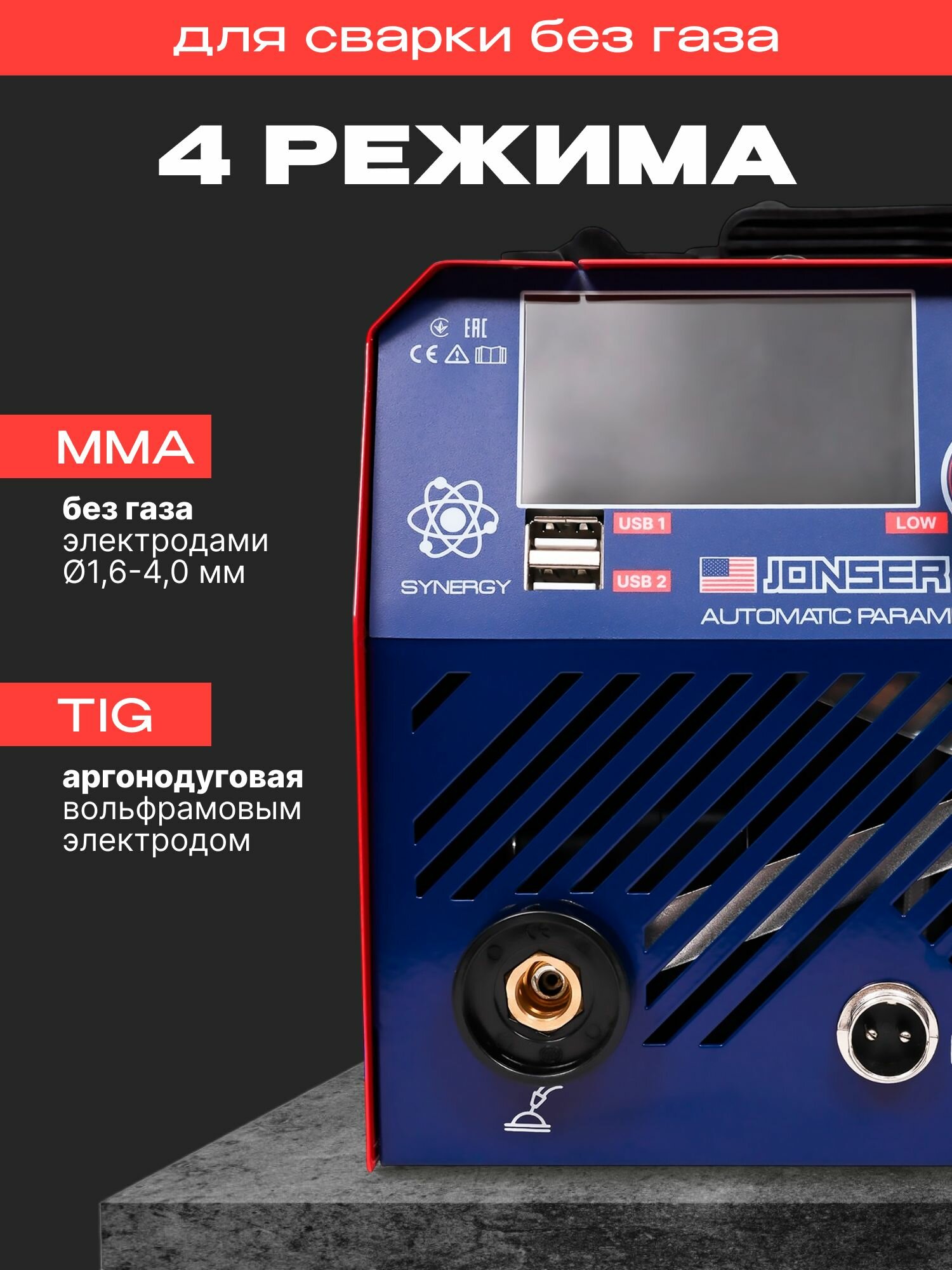 JONSER 220QXG — это полуавтомат сварочный, который поддерживает несколько режимов сварки, чтобы вы могли выбрать оптимальный метод для ваших задач: