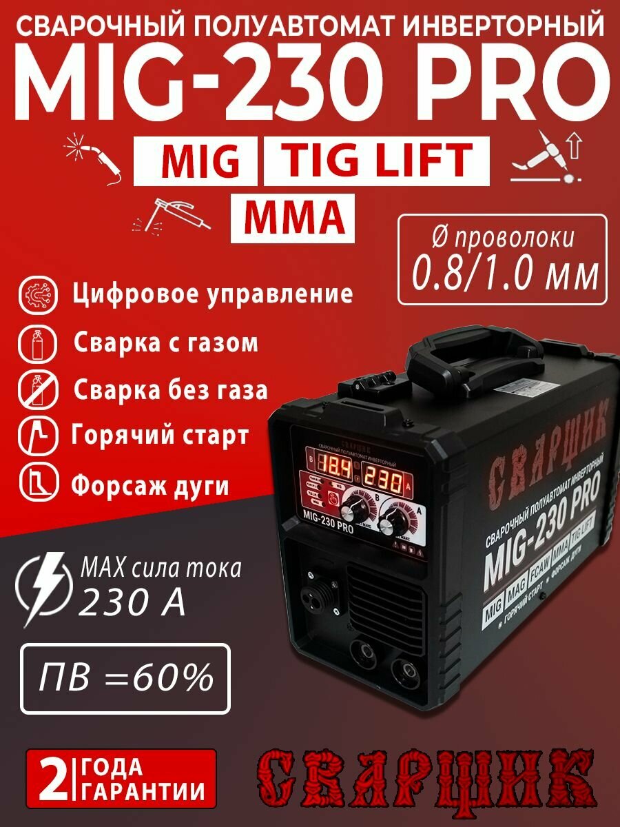 Сварочный аппарат полуавтомат сварщик MIG-230 PRO 7 в 1 / с газом и без газа / IGBT: сравнение цен, характеристики, фото, актуальное наличие и цены.