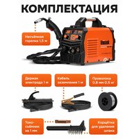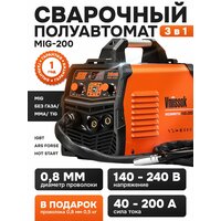 Сварочный аппарат инверторный полуавтомат Vniissok MIG-200 без газа 3 в 1 (ММА/MIG NO GAS/TIG) IGBT. Данный инструмент построен на современной элементной базе с использованием IGBT транзисторов ведущих производителей в отрасли. Инверторная частота 50кГц позволяет значительно уменьшить габаритные размеры и вес сварочного аппарата. Значительное уменьшение потерь металла от брызг, заметно увеличивает эффективность сварки и уменьшает затраты энергии. Инверторная технология на базе IGBT транзисторов обеспечивает лучший контроль за параметрами сварочного тока, обеспечивает высокое качество и стабильную работу. Осуществляет управление замкнутой системой обратной связи, обеспечивает постоянство значения рабочего напряжения и компенсирует перепады питающего напряжения в диапазоне ±15%. Подбирает значение рабочего напряжения, идеально подходящего для заданной величины сварочного тока, обеспечивает превосходные характеристики сварки. Включает в себя уникальную систему контроля сварочных динамических характеристик - обеспечивает стабильность горения дуги, низкий уровень разбрызгивания металла, прекрасную форму шва, высокую эффективность сварки. Включает функцию капельного переноса в процессе сварки, обеспечивает высокий уровень напряжения холостого хода, оптимальную, плавную скорость подачи проволоки, практически безотказное возбуждение дуги. Имеет защиту от перегрева, а также прочный и устойчивый к коррозии корпус. Аппарат оснащен стабилизатором питающего напряжения. Отлично справляется с обьёмными работами. Работает в режиме MIG 40 до 200 А, а в режиме MMA 40 до 200 А. MIG-200 относится к паяльно-термическим инструментам.