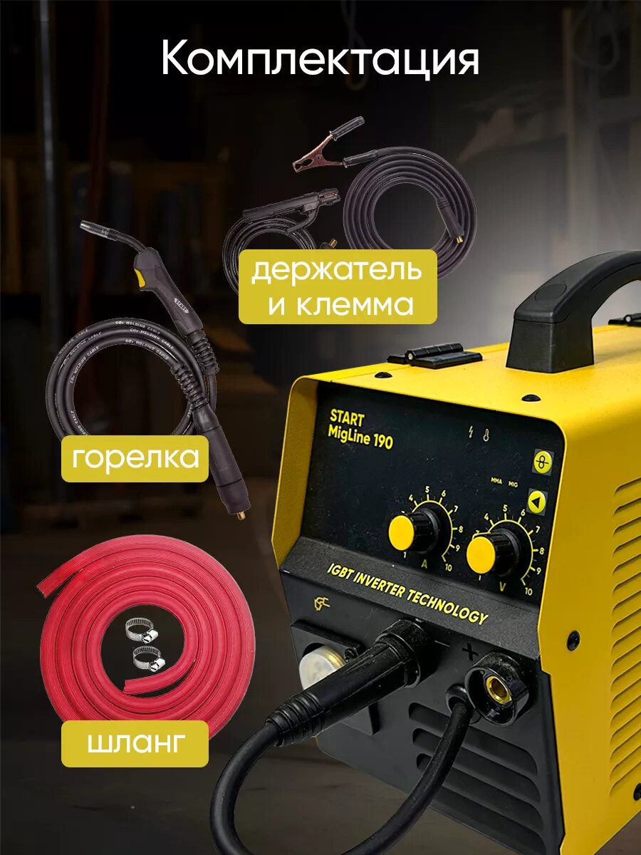 Сварочный инвертор START MIGLine 190, ручная дуговая MMA и полуавтоматическая MIG/MAG сварка: сравнение цен, характеристики, фото, актуальное наличие и цены.
