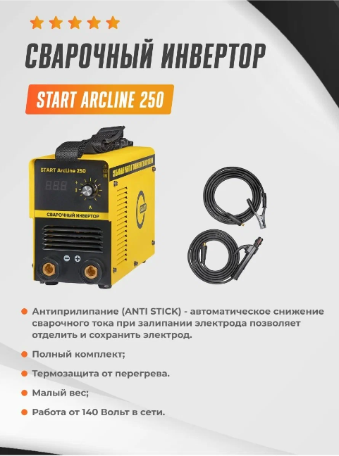Сварочный инвертор START, MMA 250, от 140 до 240V, 8кВт, лёгкий и компактный: сравнение цен, характеристики, фото, актуальное наличие и цены.