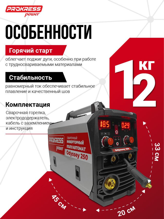 Сварочный инверторный полуавтомат, аппарат для сварки PROKRESS ODYSSEY 250: сравнение цен, характеристики, фото, актуальное наличие и цены.