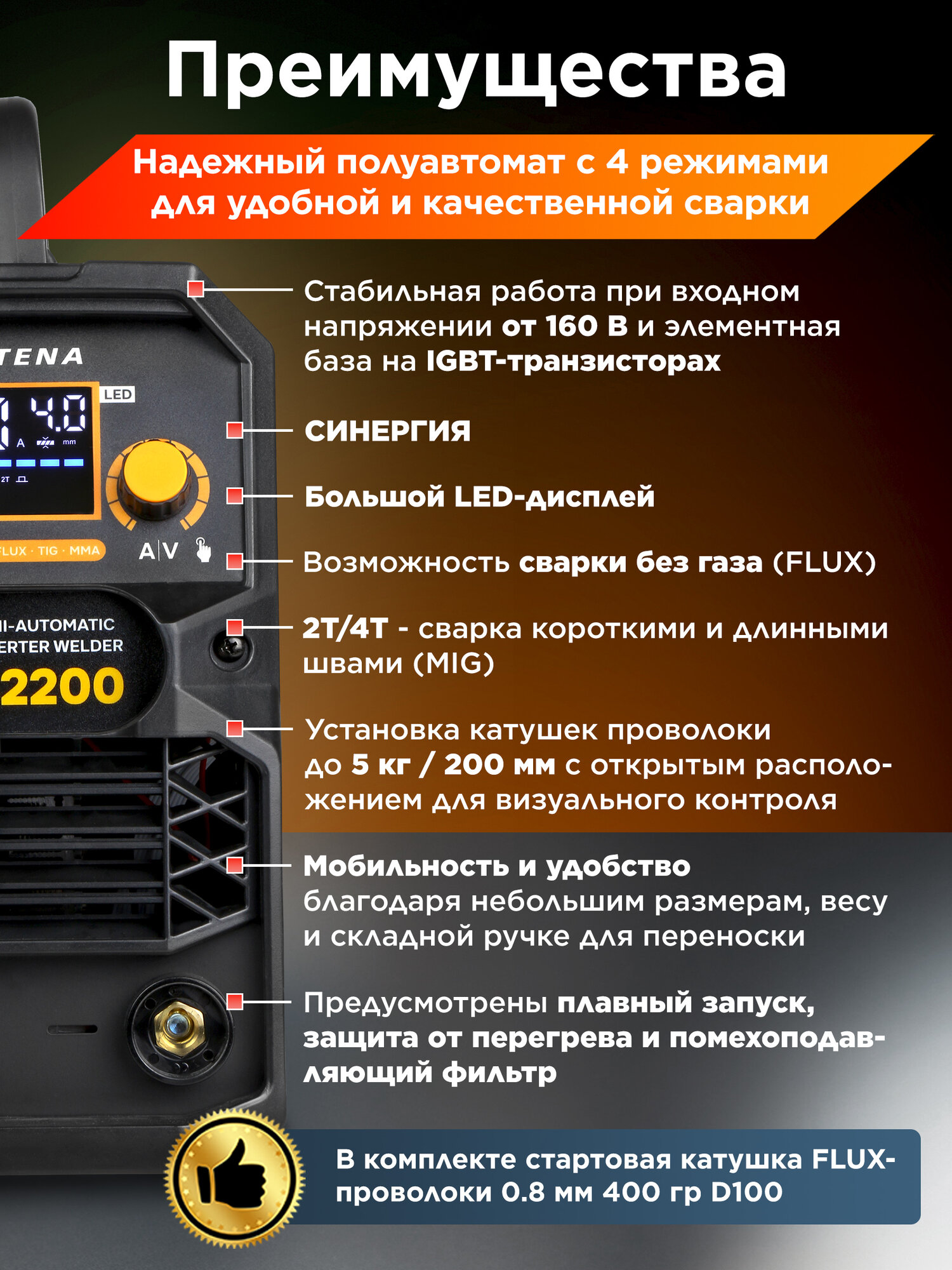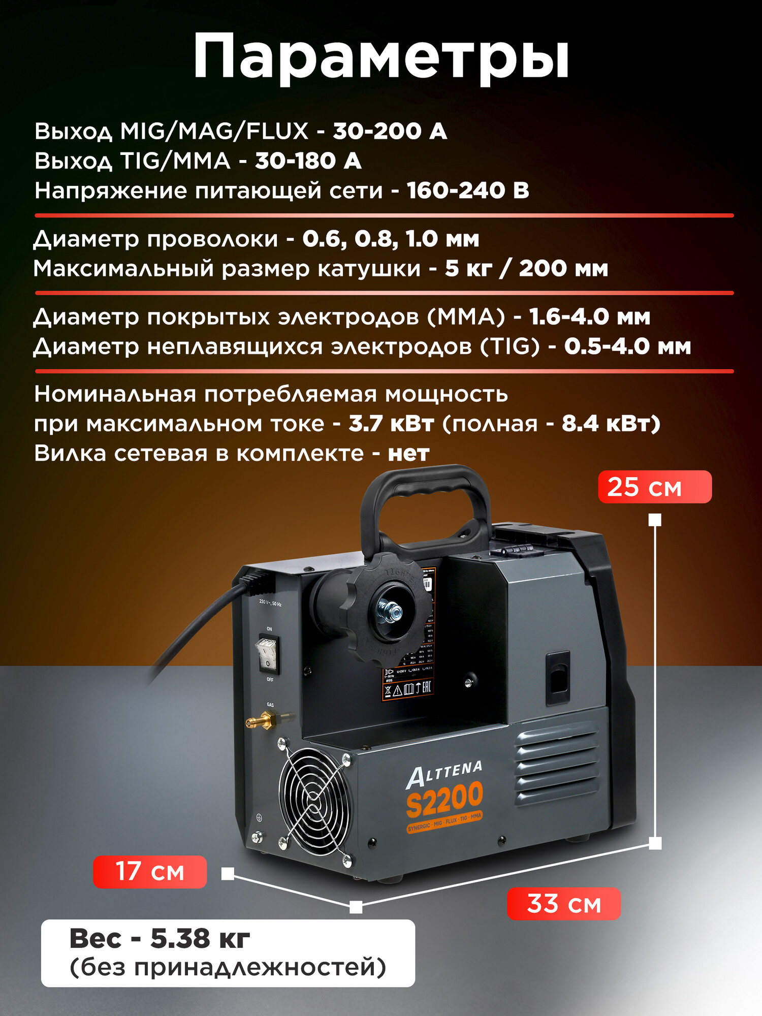 Полуавтомат сварочный ALTTENA S2200 - это надежный и многофункциональный сварочный аппарат
