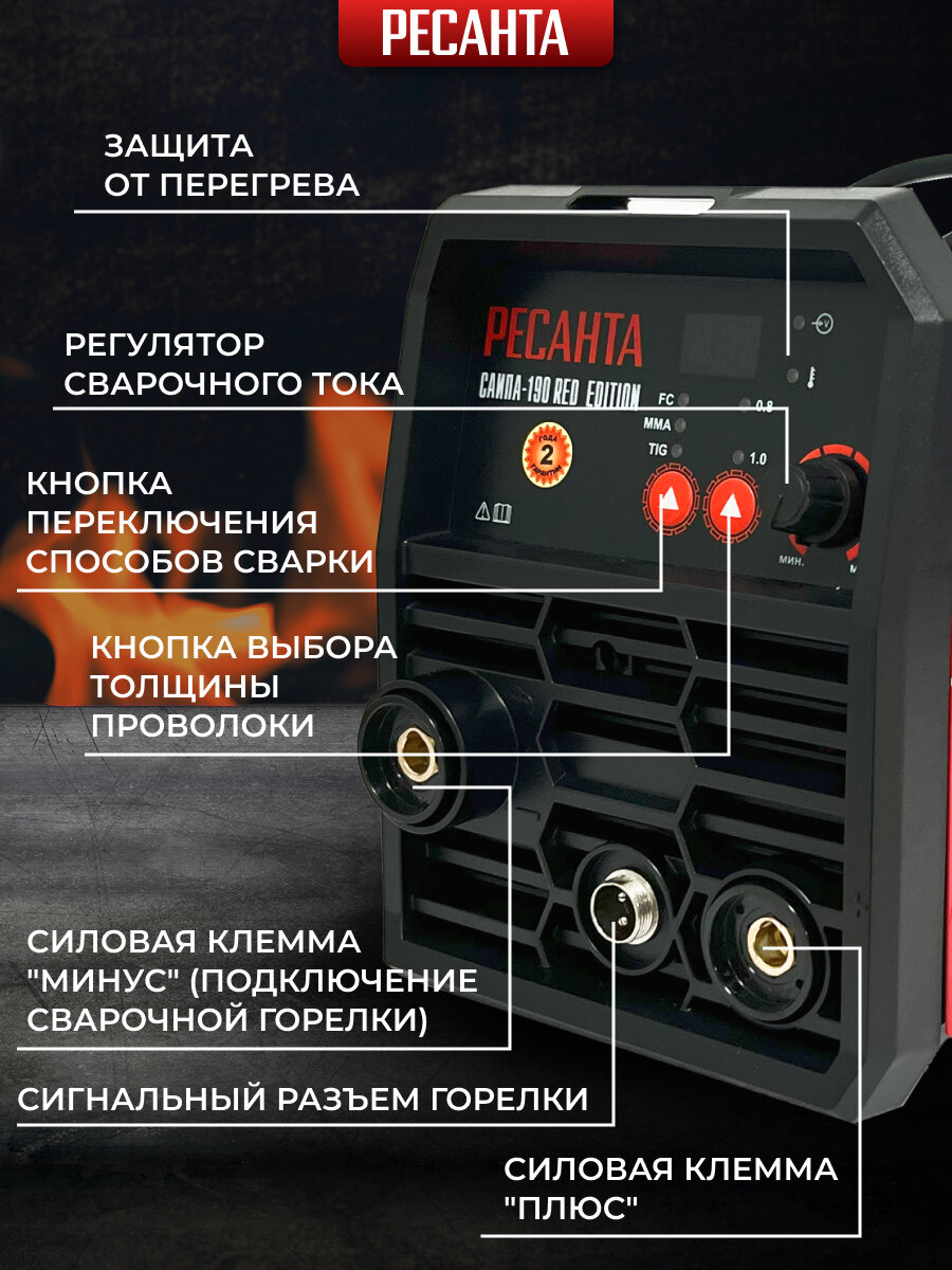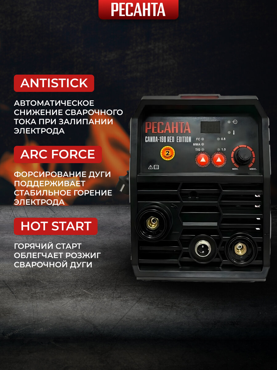 Купить Сварочный полуавтомат без газа, Ресанта, САИПА-190 Red Edition, MMA, TIG, FLUX с доставкой по всей России.