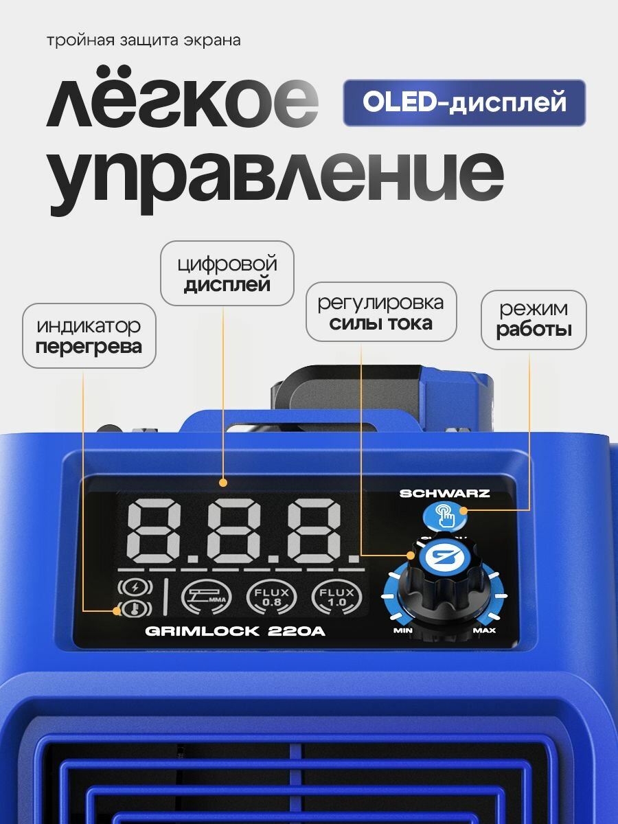 Купить Сварочный полуавтомат без газа / Сварочный аппарат инверторный 220 A SCHWARZ, MMA FCAW с доставкой по всей России.
