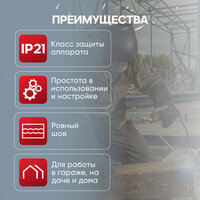 6. Эргономика и простота управления: Интуитивно понятное управление и эргономичный дизайн делают аппарат доступным даже для начинающих сварщиков. Дополнительные функции, такие как антиприлипание электрода (Anti-Stick) и горячий старт (Hot Start), повышают удобство работы.