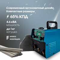 5. Широкий функционал: Универсальный инструмент работает в трех режимах: MIG (сварка в среде защитного газа), MMA (ручная дуговая сварка) и LIFT TIG (аргонодуговая сварка). Диапазон силы тока составляет от 20 до 220 А, что делает его идеальным для выполнения различных видов сварочных работ. Устройство может работать с катушками до 1 кг и электродами до 5 мм, демонстрируя высокую производительность и гибкость применения.
