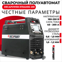 Сварочный полуавтомат DECAPOWER XTRAMIG 200 с газом/без газа 5в1 MIG/MAG/FLUX/ММА/LIFT TIG: сравнение цен, характеристики, фото, актуальное наличие и цены.
