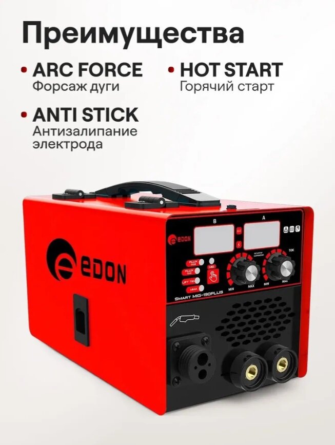 Сварочный полуавтомат EDON Smart MIG-190 Plus, черно-красный, с газом и без газа: сравнение цен, характеристики, фото, актуальное наличие и цены.