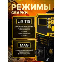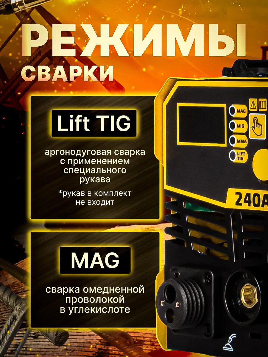HANTEL MIG-240 сварочный инверторный аппарат для любителей и профессионалов! Новый, современный дизайн. Простой интерфейс и легкое управление отличают этот сварочный полуавтомат, что делает его доступным даже для новичков в этой области, а также будет доволен опытный сварщик. Универсальное применение: для домашних целей, для работы на даче, в мастерской и гараже, на сто. Сварка с газом/ без газа. Максимальный сварочный ток 240А. Возможность одновременного подключения горелки и держателя электродов. Не снимая рукав, можно варить в режиме MMA, переключив режим и подключив держатель электродов в минусовую клемму. Малогабаритный, что обеспечивает комфорт в работе и при транспортировке. Удобен для хранения дома, в гараже, в багажнике машины. Комплектация - Сварочный аппарат - 1 шт. - Кабель с горелкой - 1 шт. - Кабель с клемой заземления - 1 шт. - Держатель электродов - 1 шт. - Инструкция по эксплуатации на русском языке - 1 шт. - Проволока в подарок 1 кг