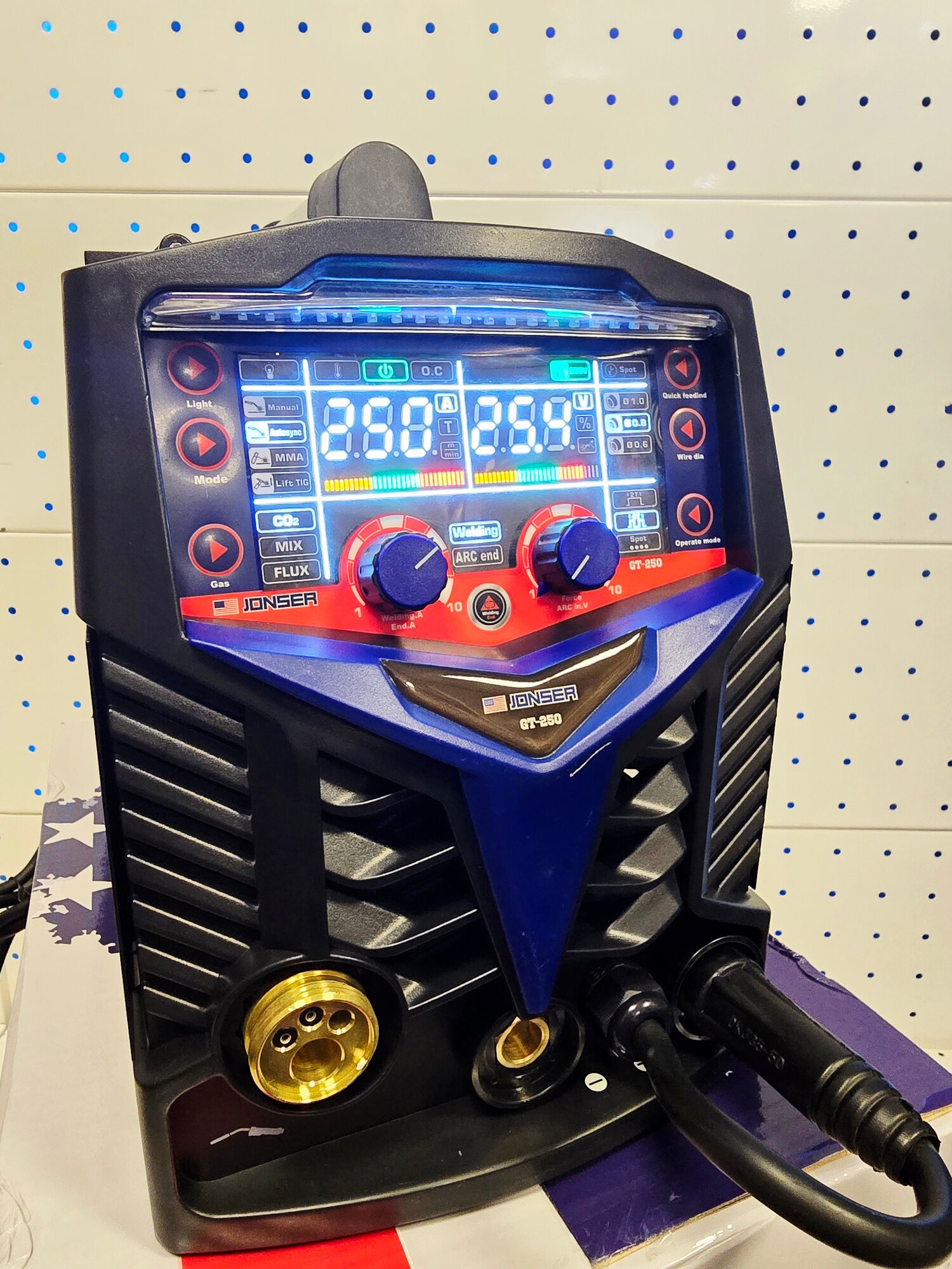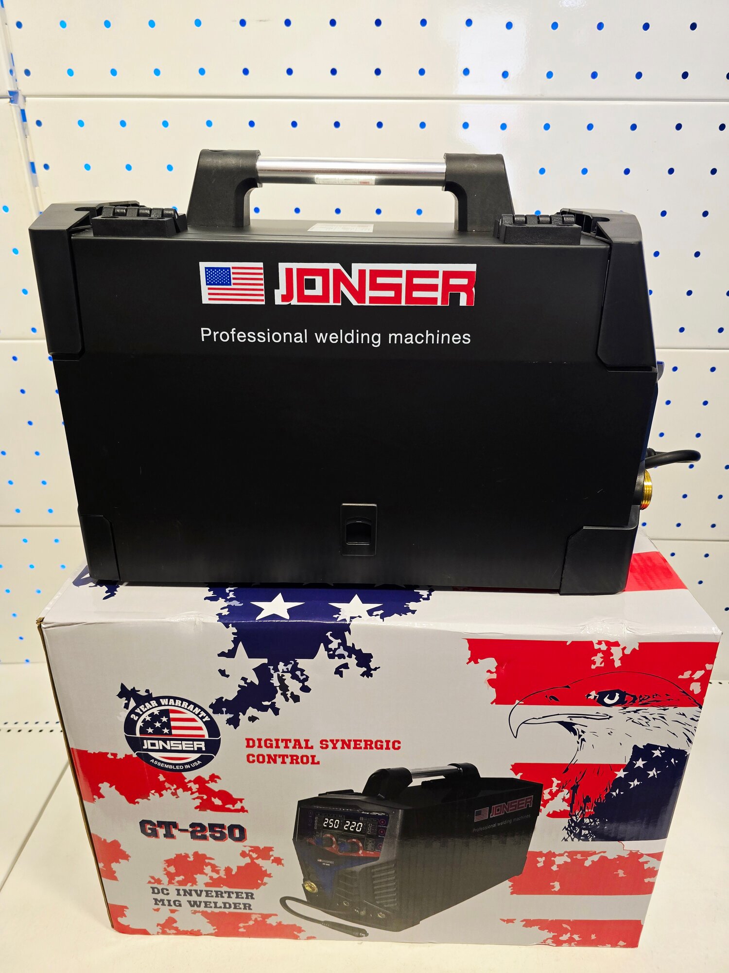 Купить Сварочный полуавтомат Jonser GT-250, 7 в 1, MMA/MIG/MAG/LIFT TIG/SPOT/2T/4T/SYNERGY управление, 20-250А с доставкой по всей России.
