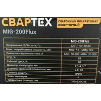 это аппарат инверторного типа, рассчитанный на интенсивную ежедневную работу на высоком токе. Подходит, как для бытового, так и для полупрофессионального использования. Сварочный инверторный полуавтомат без газа предназначен для сварки электродами (МИГ сварка), а также сварки с применением сварочной проволоки с флюсом (порошковой проволоки, катушкой до 1кг). Дополнительными функциями сварочного полуавтомата являются: антизалипание электрода, форсаж дуги, горячий старт, защита от перегрева. Энергосберегающий сварочный аппарат оснащен IGBT транзисторами, прост в использовании и имеет LCD дисплей, что позволяет более тонко настраивать и контролировать работу. Характеристики модели MIG-200 FLUX: Режимы работы: MMA/FLUX; Напряжение/Частота: 220 В / 50 Гц; Номинальная мощность: 4.5 кВт; Максимальная мощность (ММА): 6,3 кВт; Максимальная мощность (FLUX): 5.6 кВт; Диапазон регулирования тока ММA/FLUX: 40-200А; Диапазон регулирования напряжения (FLUX): -2 В +2 В; Скорость подачи проволоки: 3-16 м/мин; ПВ фактор: 60%; Тип охлаждения: вентилятор; Диаметр электродов (мм): 1.6-4.0; Диаметр сварочной проволоки: 0,8-1,0 мм; Силовой кабель 1,7 м.