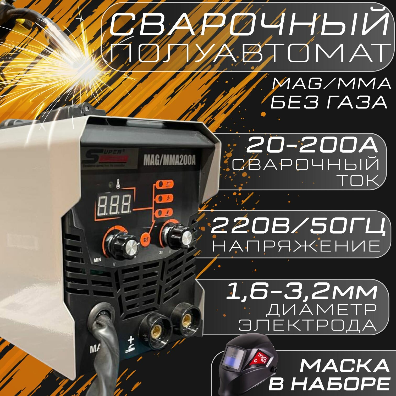 Сварочный полуавтомат SUPER PROWELL MAG/MMA 200А-1кг+маска в наборе, без газа, несъемный рукав: сравнение цен, характеристики, фото, актуальное наличие и цены.