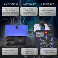 | Дополнительные функции | антиприлипание, горячий старт, защита от перегрева, форсаж дуги, функция VRD |