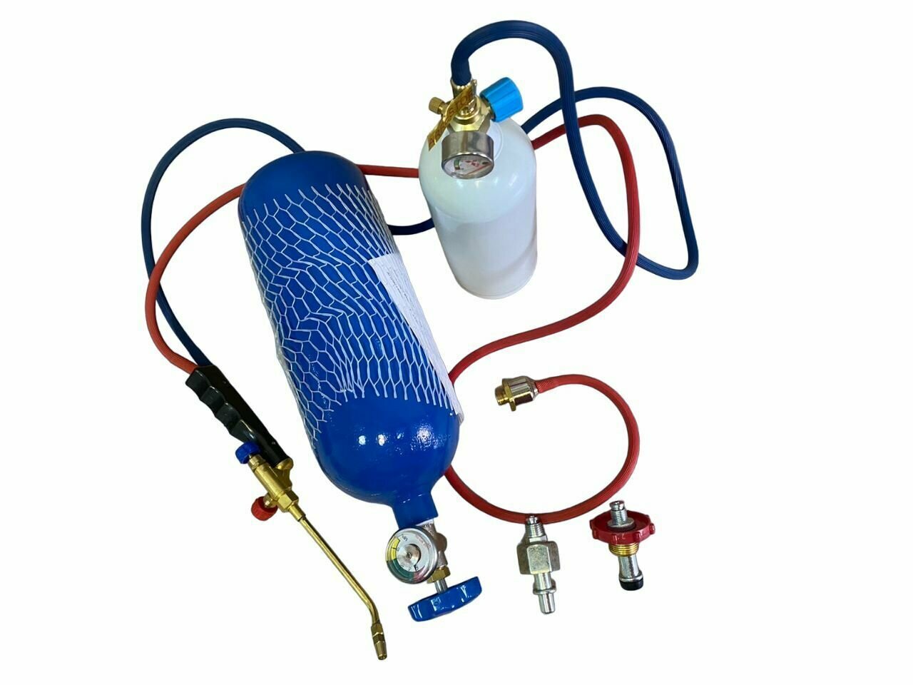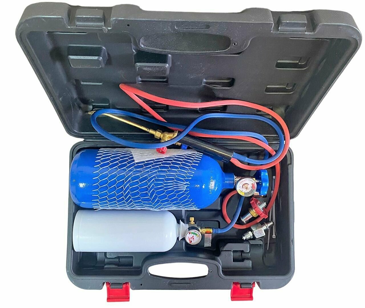 Сварочный пост в чемодане HCW-11 - это портативный кислородно-пропановый газосварочный аппарат в кейсе. Удобен при ремонте бытовых холодильников и сплит-систем. Переносная установка используется для проведения пайки твердым припоем стальных и медных труб. В комплекте кислородный и пропановый баллоны и горелка. Газосварка кислородно-пропановая заправляется от больших баллонов через переходник, который входит в комплект. Удобен при ремонте бытовых холодильников и сплит-систем. Переносная установка используется для проведения пайки твердым припоем стальных и медных труб. Комплектация поста сварочного HCW-11: