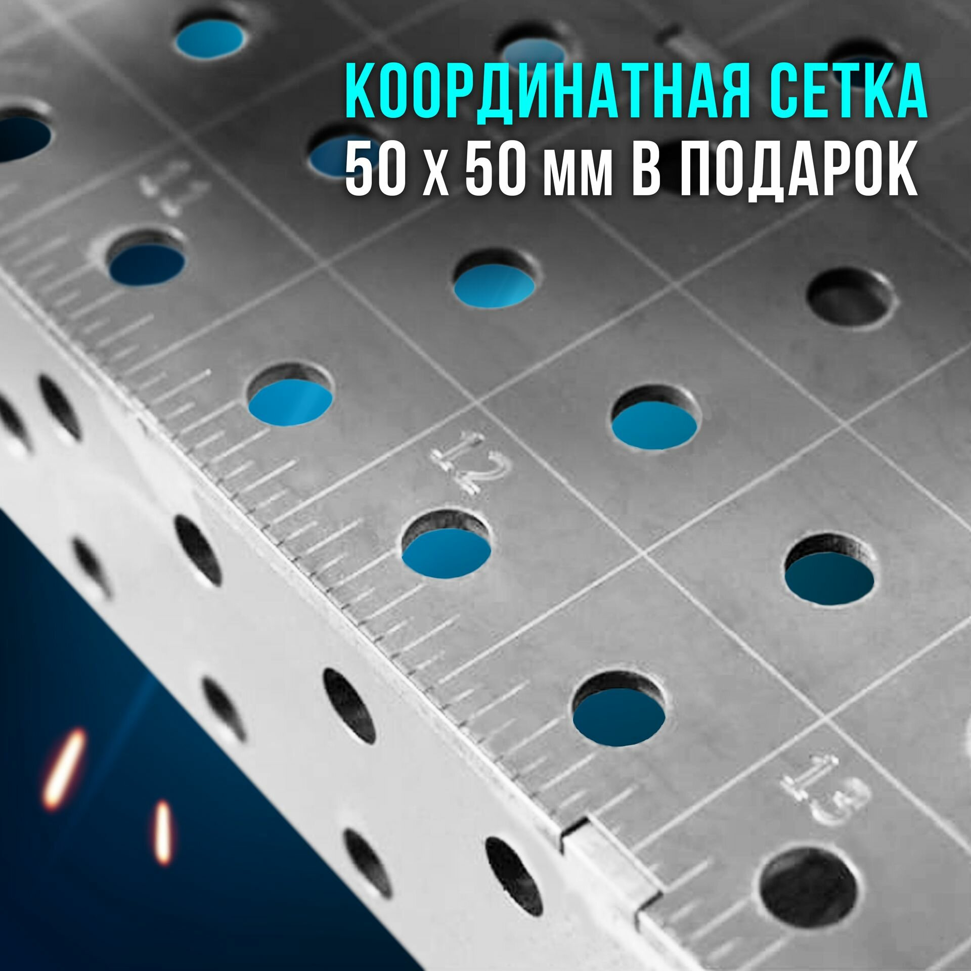 Сварочно-монтажный стол от Keepler-Stan предназначен для позиционирования и фиксации деталей и узлов металлических конструкций, а также для позиционирования роботизированной сварки. Усиленная столешница имеет отверстия диаметром 16мм и координатную сетку для использования ее в качестве шаблона. Высота боковой стенки 100 мм. Высота стола 900мм, с регулируемыми ножками.