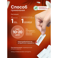 Способ применения: ректально по 1 свече утром и на ночь 10-20 дней. При необходимости курс повторить с перерывом 2 недели.