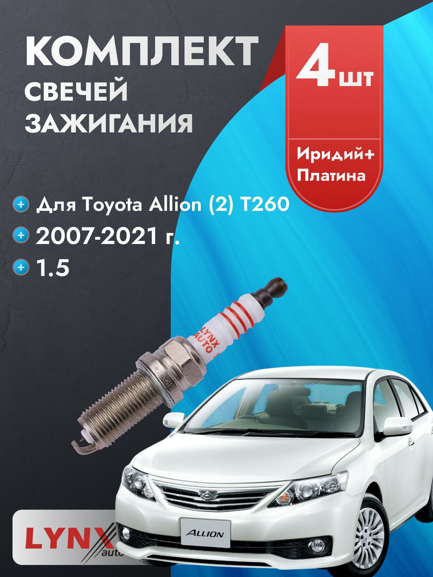 Свечи зажигания для Toyota Allion 2007-2021 1.5 Двигатель 1NZ-FE, комплект из 4 шт.: сравнение цен, характеристики, фото, актуальное наличие и цены.