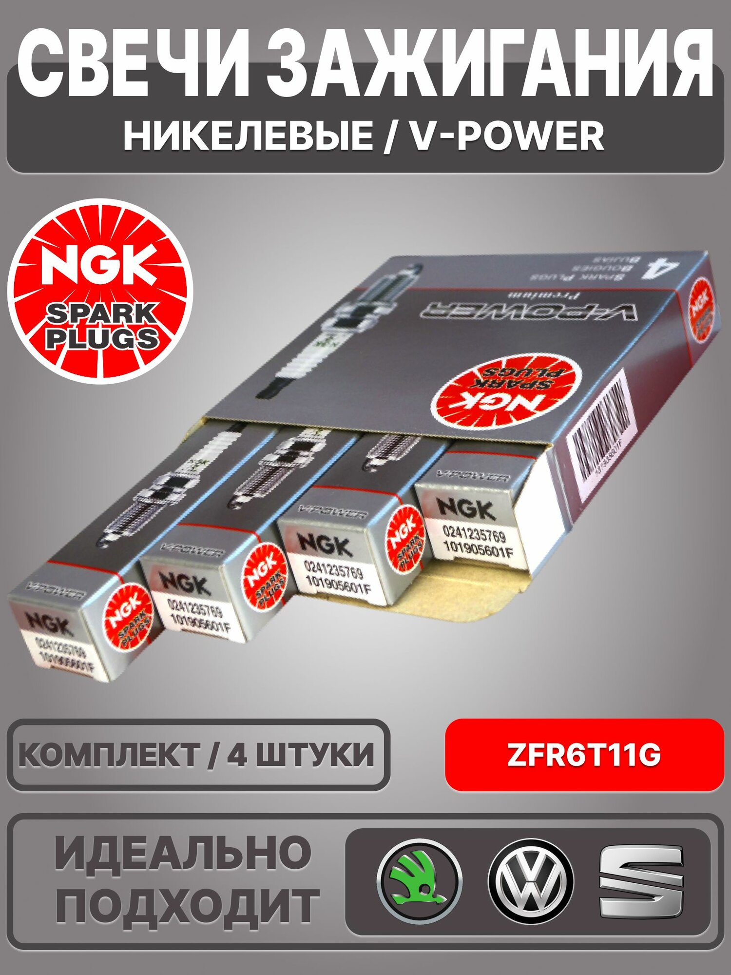 Свечи зажигания, NGK / Никелевые, V-power / 101905601F, ZFR6T11G: сравнение цен, характеристики, фото, актуальное наличие и цены.