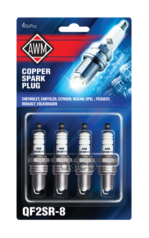 Свечи зажигания QF2SR-8 AWM (комплект 4шт.), блистер. упаковка AWM арт. 410090029: сравнение цен, характеристики, фото, актуальное наличие и цены.