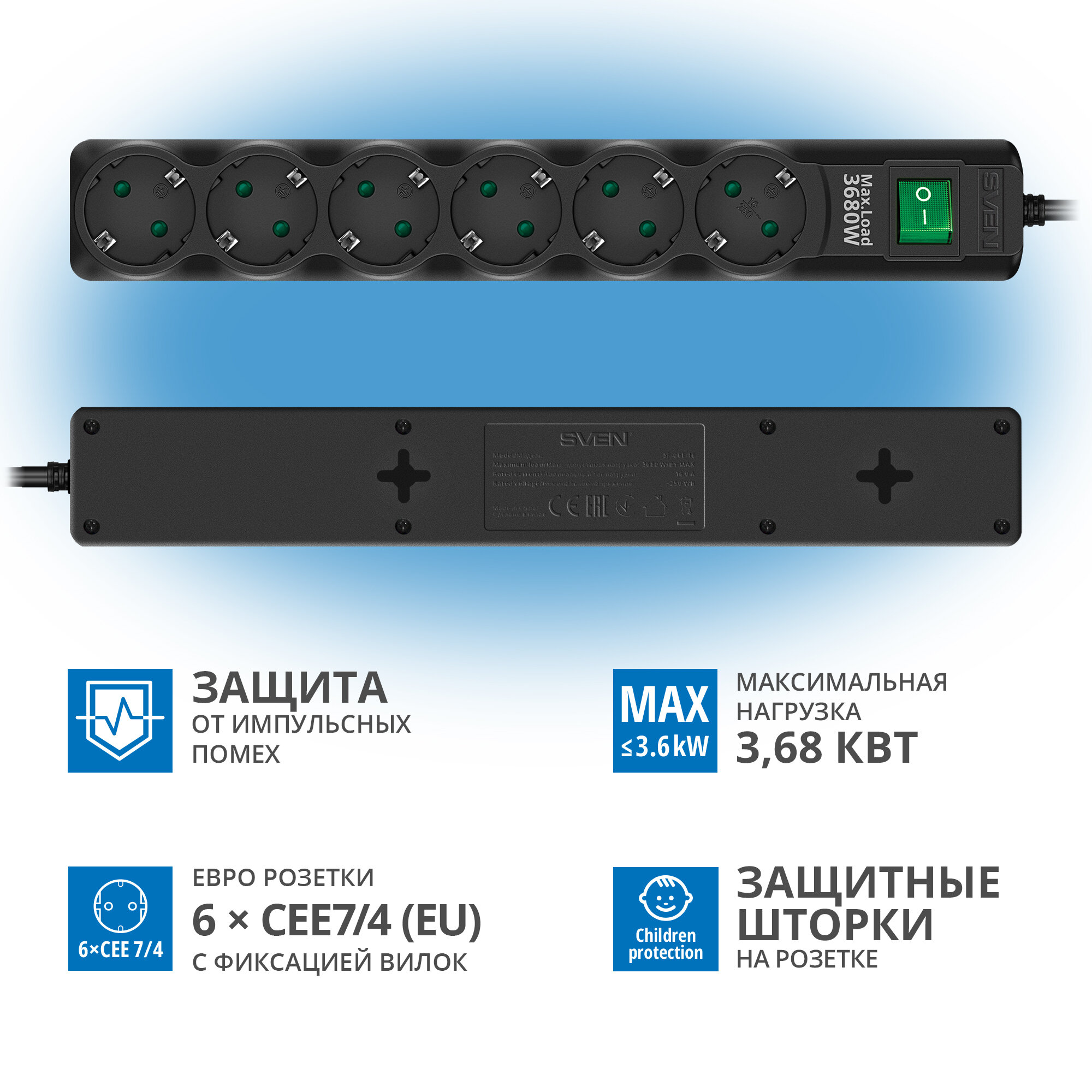 Купить SVEN SF-06E-16 Сетевой фильтр 5 м / Удлинитель 6 розеток CEE7/4 (EU), 3680 Вт с доставкой по всей России. SVEN SF-06E-16 Сетевой фильтр 5 м / Удлинитель 6 розеток CEE7/4 (EU), 3680 Вт: сравнение цен, характеристики, фото, актуальное наличие и цены.