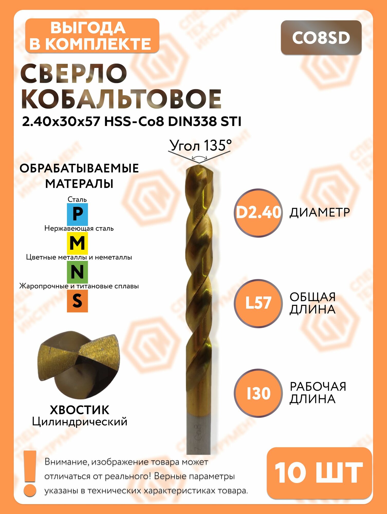 Купить Сверло кобальтовое 2.40x30x57 HSS-Co8 DIN338 10 штук с доставкой по всей России. Сверло кобальтовое 2.40x30x57 HSS-Co8 DIN338 10 штук: сравнение цен, характеристики, фото, актуальное наличие и цены.