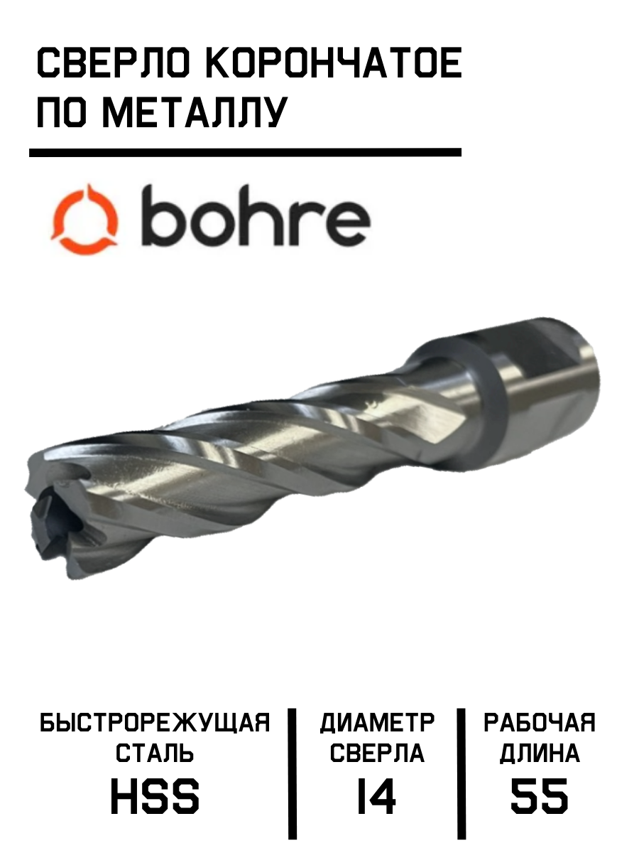Купить Сверло корончатое по металлу HSS Bohre 14х55 с доставкой по всей России. Сверло корончатое по металлу HSS Bohre 14х55: сравнение цен, характеристики, фото, актуальное наличие и цены.