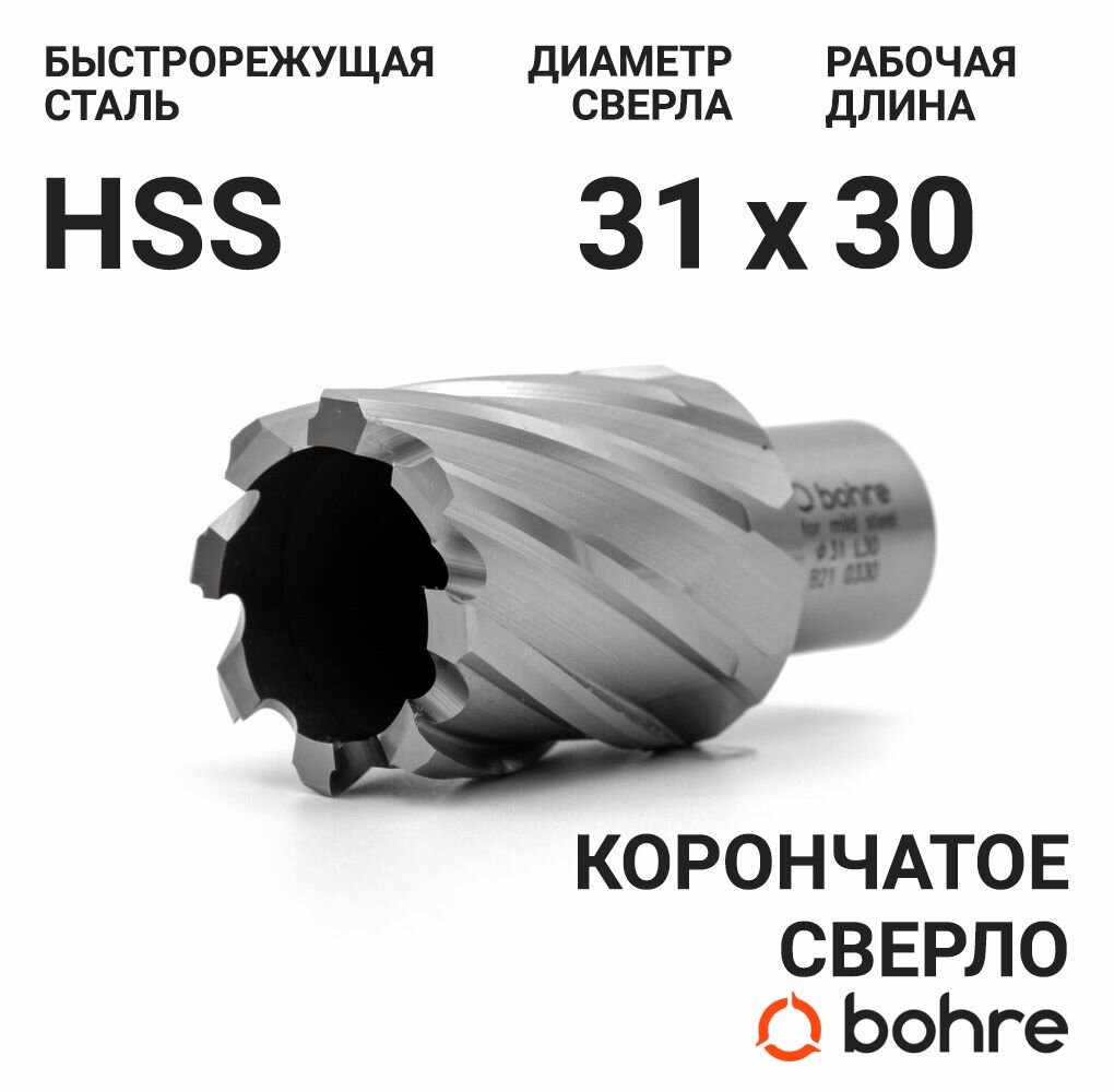 Сверло корончатое по металлу HSS Bohre 31х30 предназначено для сверлильных станков на магните.