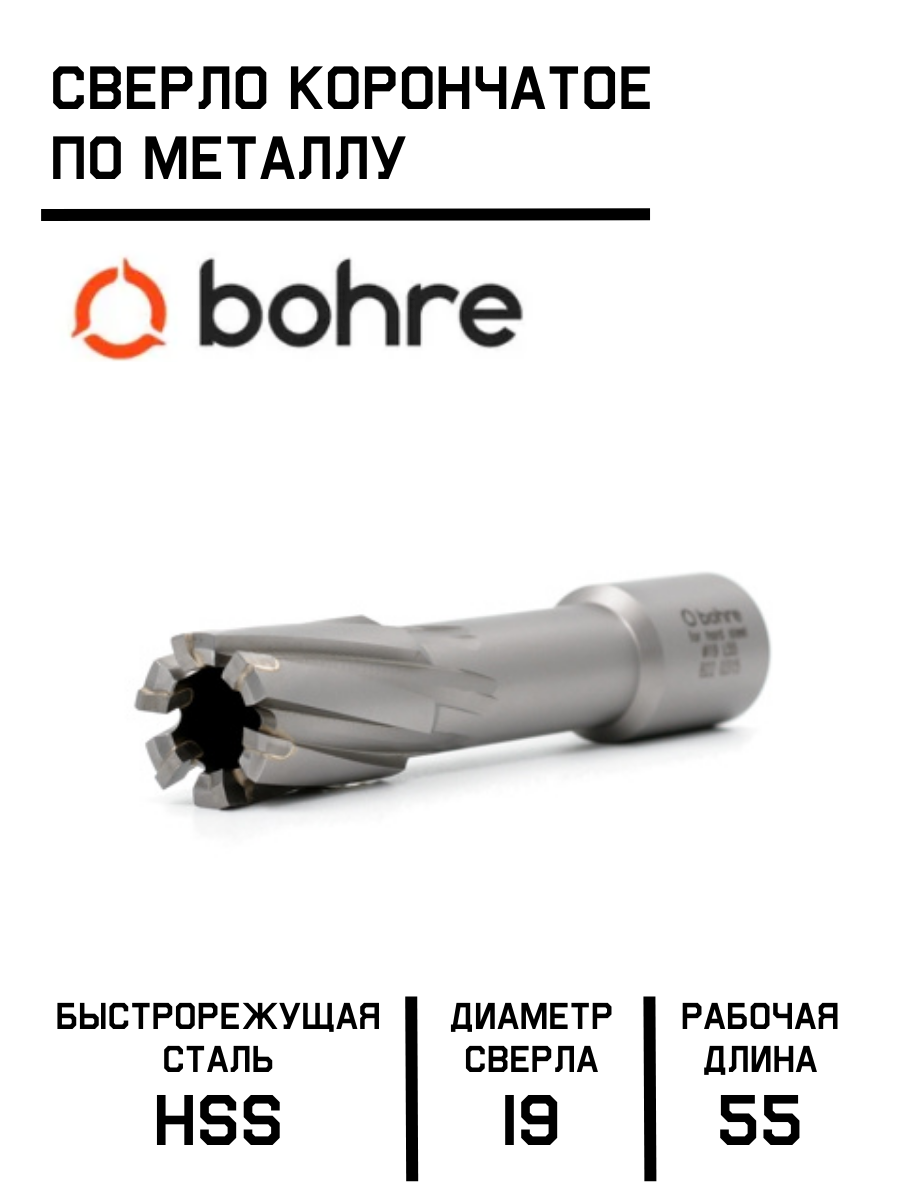 Сверло корончатое по металлу TCT Bohre 19х55: сравнение цен, характеристики, фото, актуальное наличие и цены.