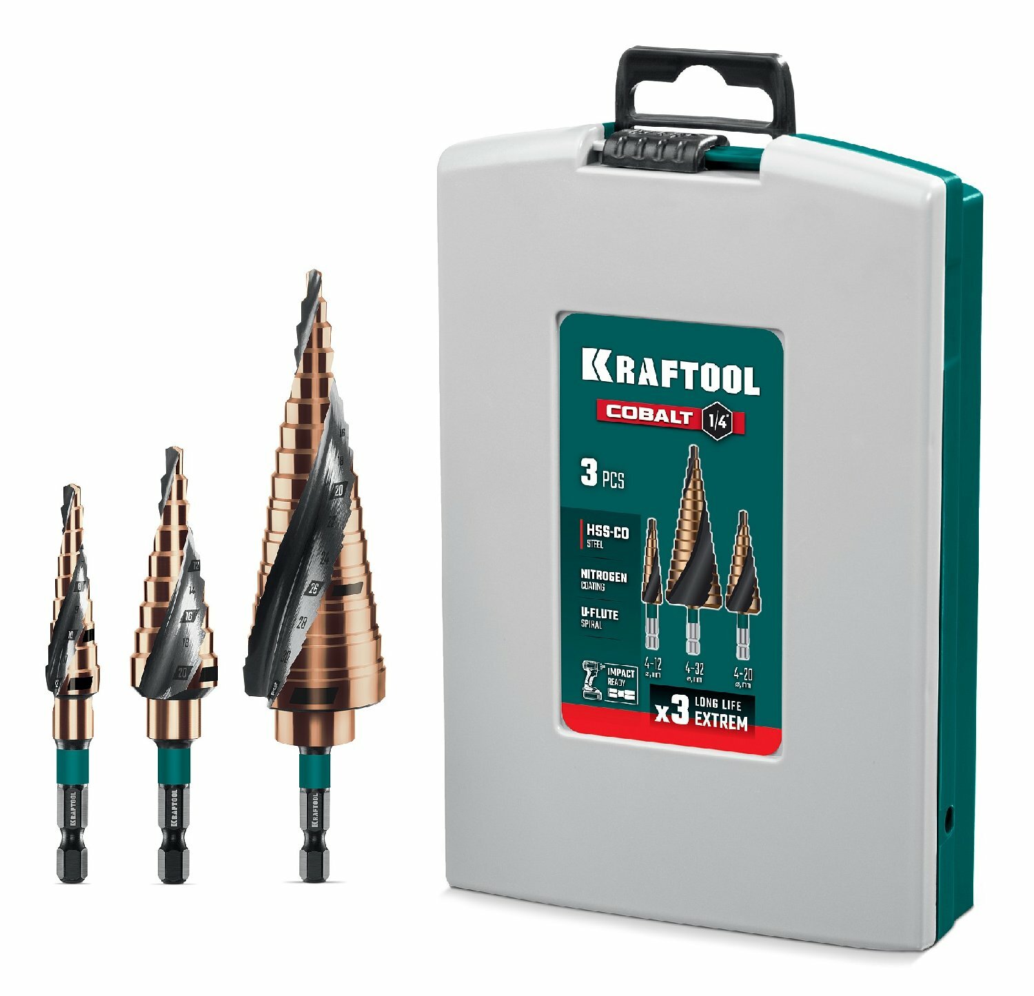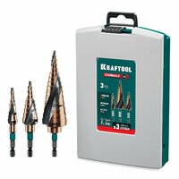 Сверло ступенчатое KRAFTOOL COBALT 3 шт; 4-32мм; азотирование; винтовая спираль; набор сверл ступенчатых (29691-4-32-H3): сравнение цен, характеристики, фото, актуальное наличие и цены.