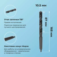 Купить Сверло по металлу 10.5 мм NORGAU Industrial спиральное HSS фрезерованное с хвостовиком-конус Морзе, правое, DIN 345 с доставкой по всей России.